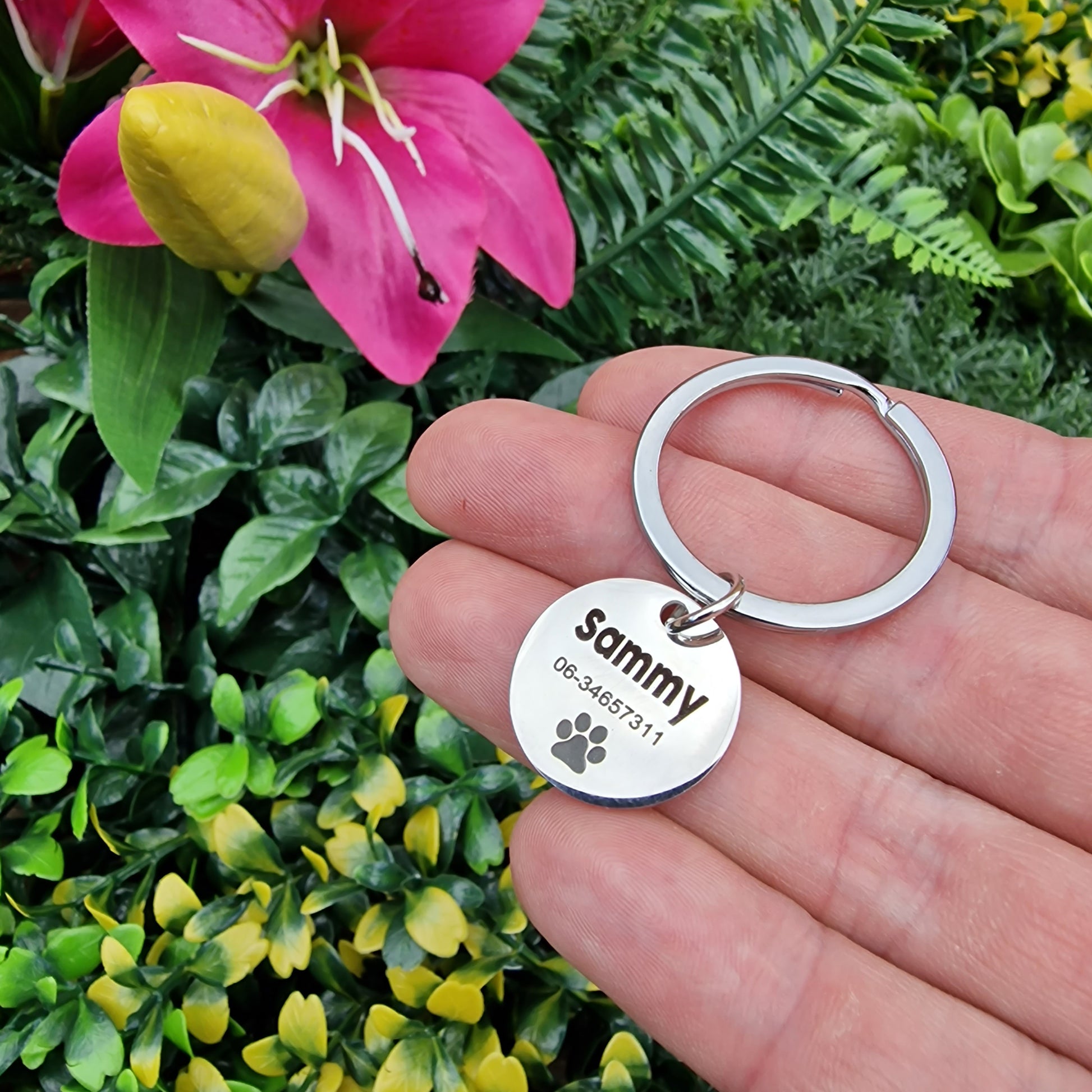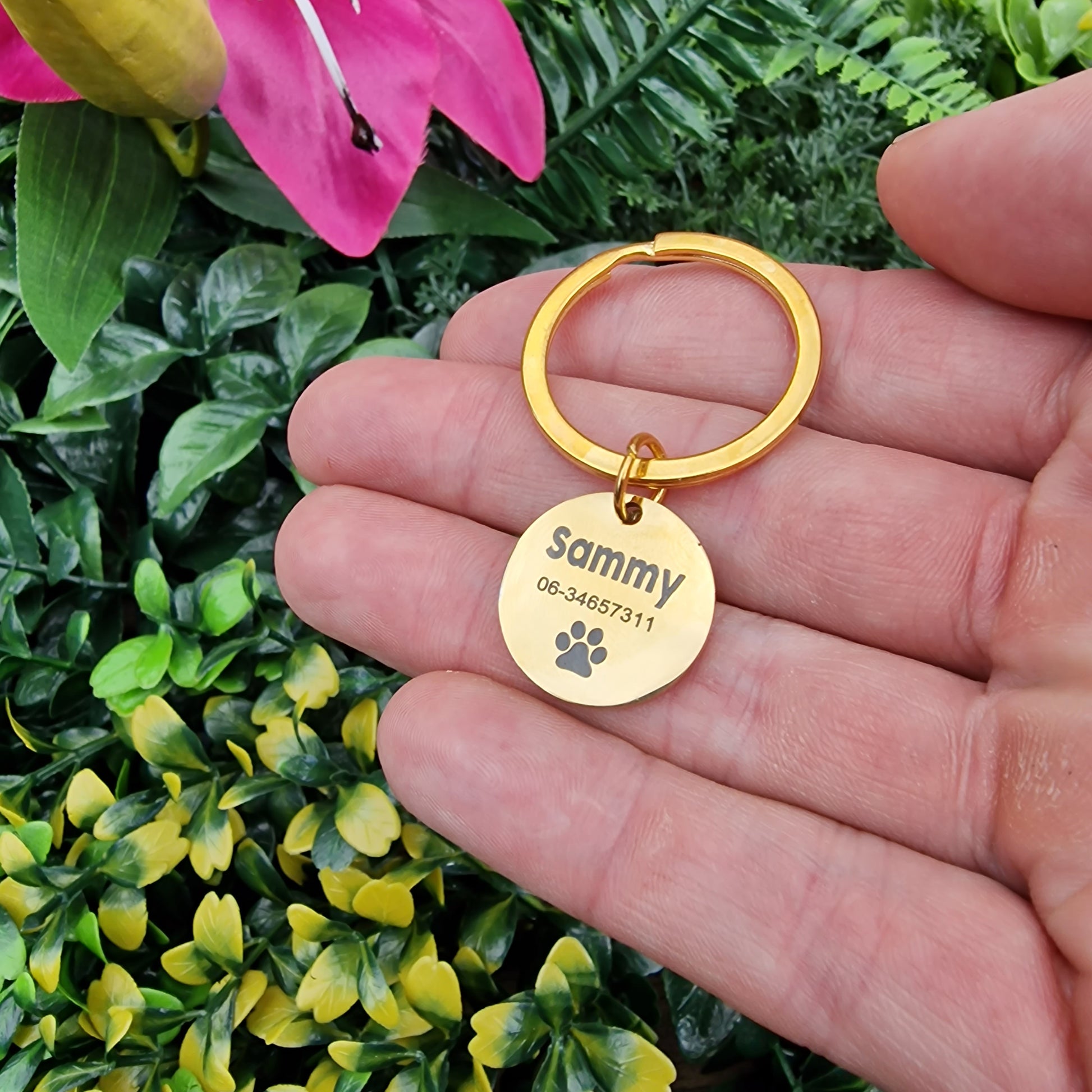 Gegraveerde hondenpenning met naam en telefoonnummer | Rond klein